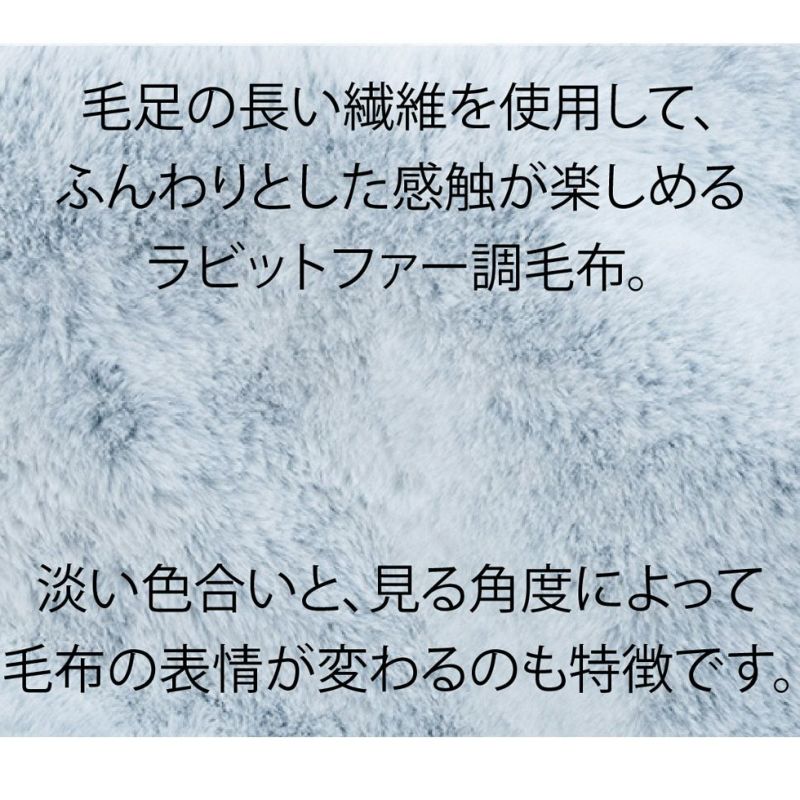 毛足の長い繊維を使用して、ふんわりとした感触が楽しめるラビットファー調毛布。淡い色合いと、見る角度によって毛布の表情が変わるのも特徴です。