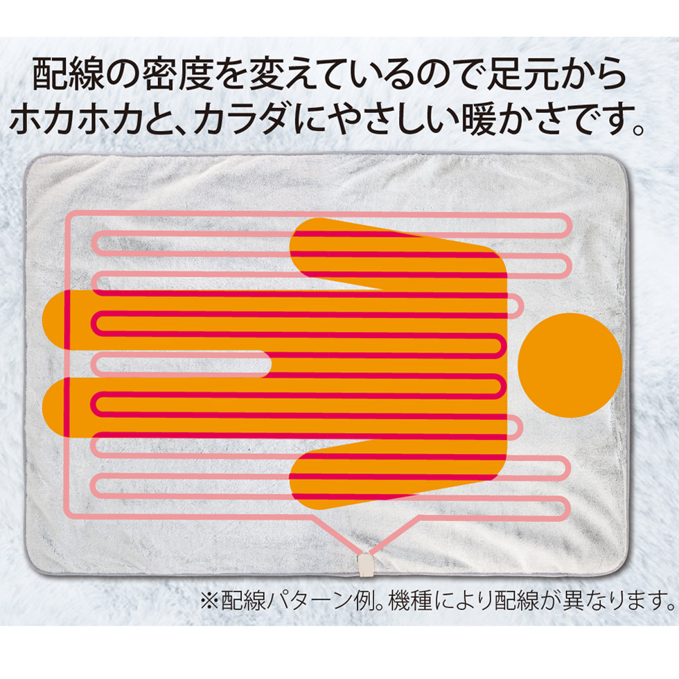 配線の密度を変えているので足元からホカホカと、カラダにやさしい暖かさです。