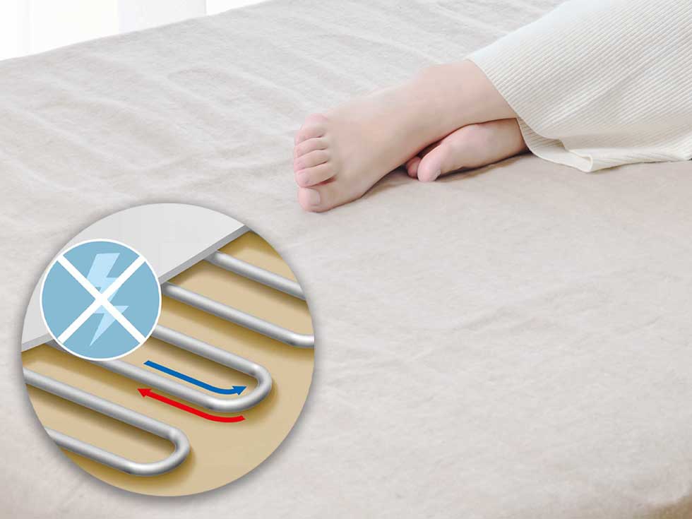 ヒーターワイヤー内に電流の向きが違う二本の発熱線を通すことで、それぞれの電磁波が相互に打ち消し合い、電磁波の発生を低減させます。