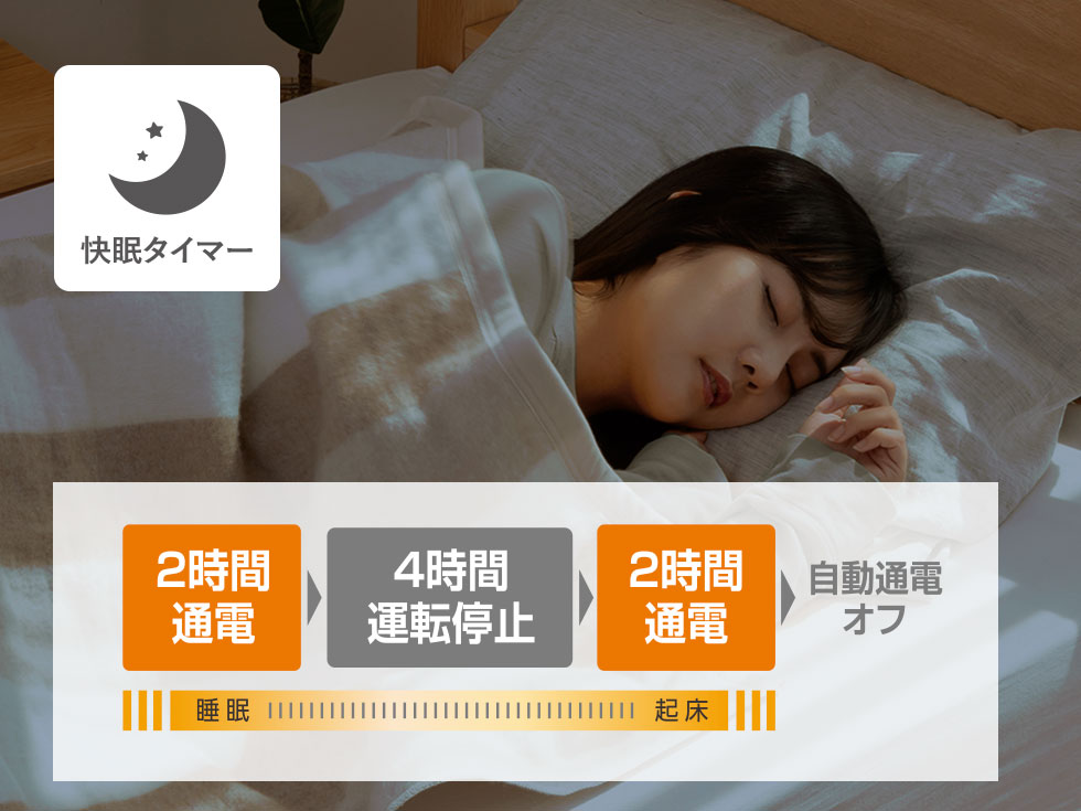 快眠タイマーで暑くなりすぎないようサポートする電気毛布です