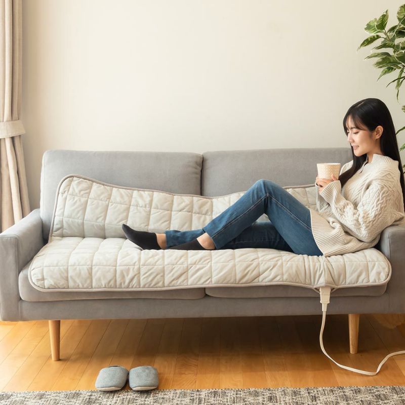 座面からやさしく温めるので、ソファもひんやり寒い日にとてもおすすめです。