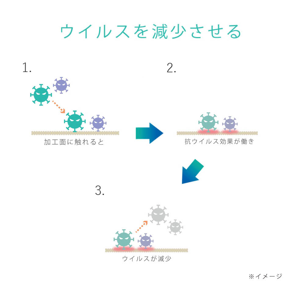 ●抗ウィルス加工は、ウィルスの働きを抑制するものではありません。