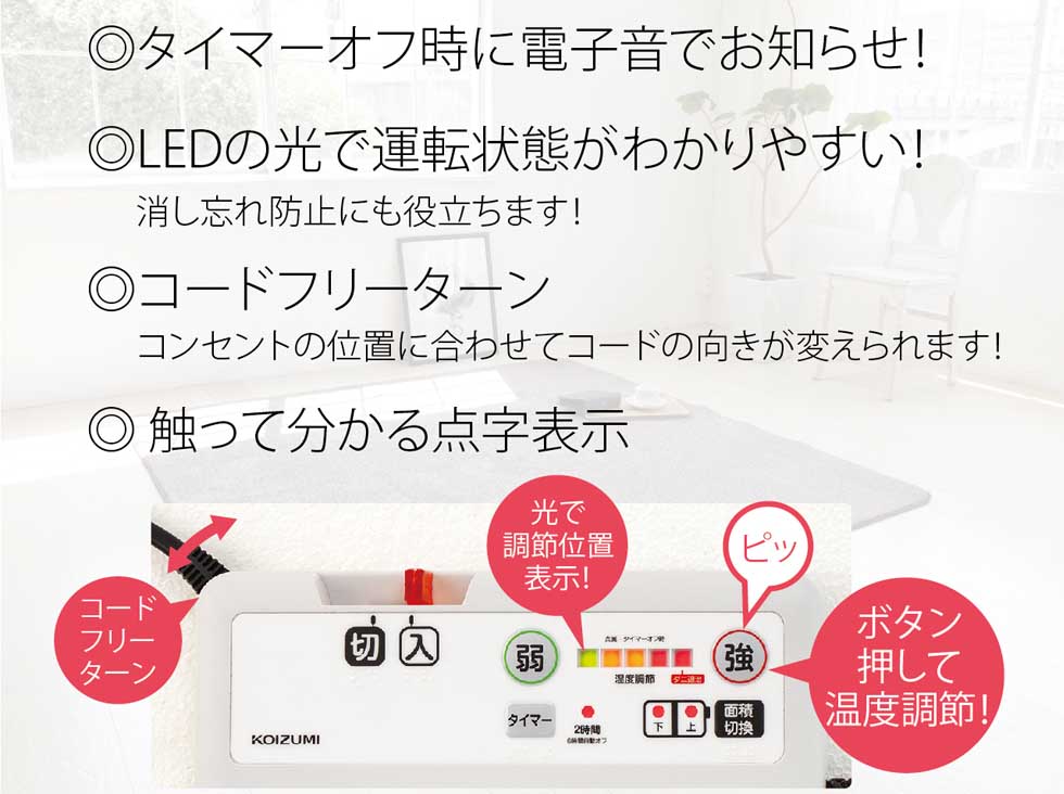 必要なところだけ暖かく、節電もできます。