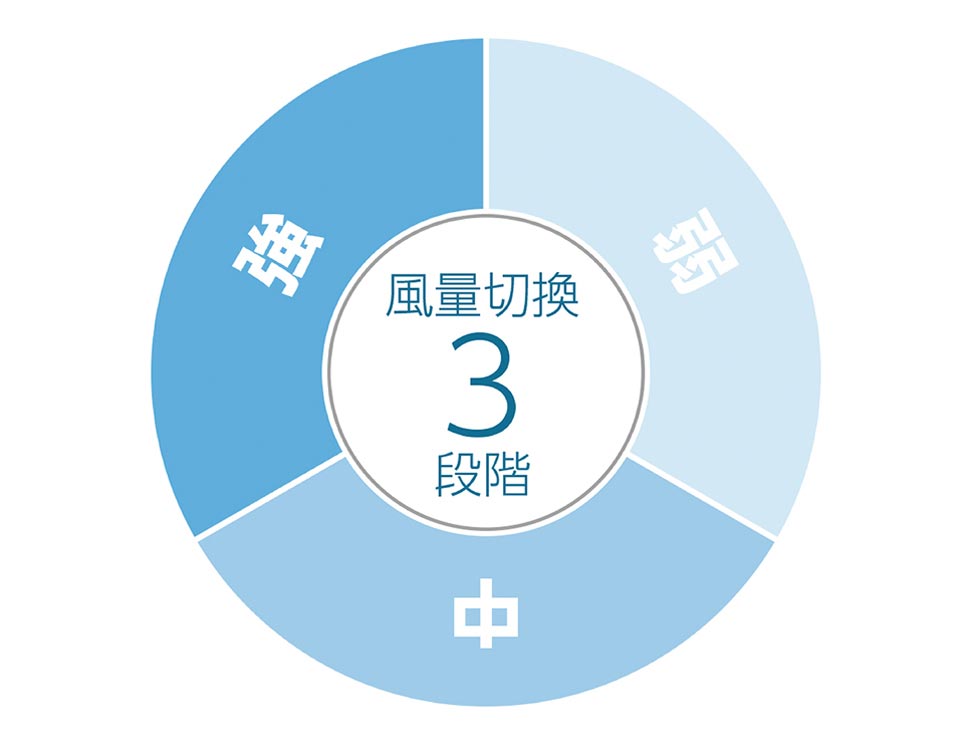 弱、中、強の3段階切替で好みの風に。