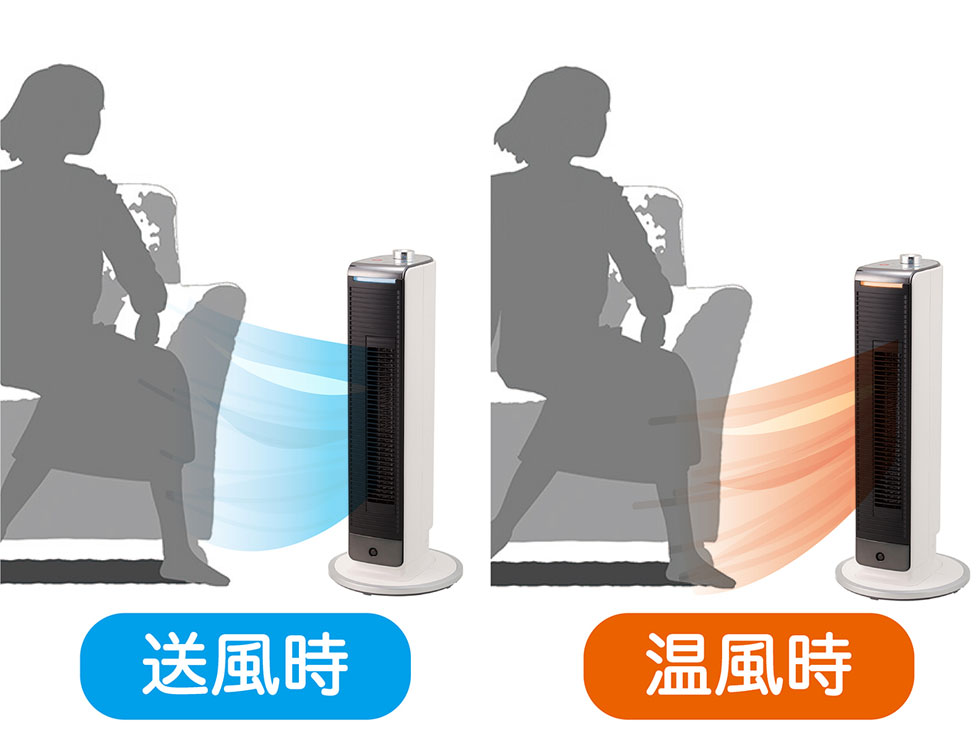 狭い場所でも置きやすくしっかり送風/温風