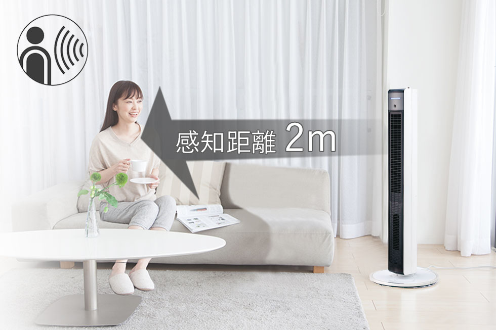 イスやソファに座っても全身にまんべんなく送風されるハイタワー設計