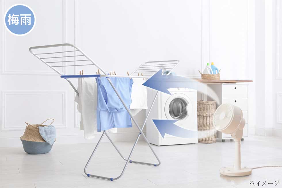 梅雨は部屋干しの補助に。サーキュレーターは1年中活躍します。
