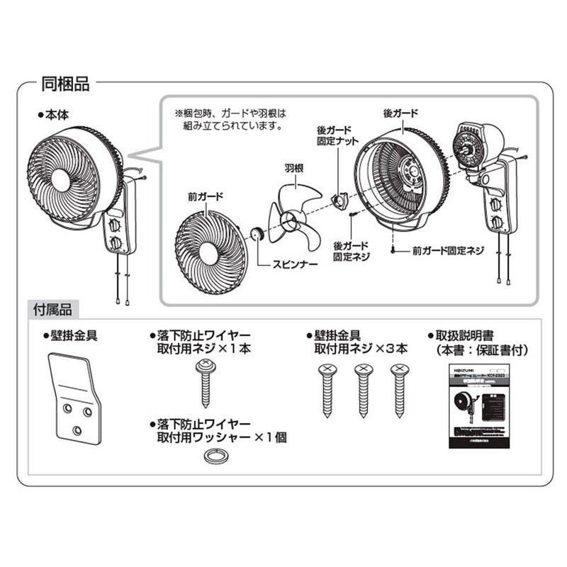 壁掛けサーキュレーター kcf2333 同梱物