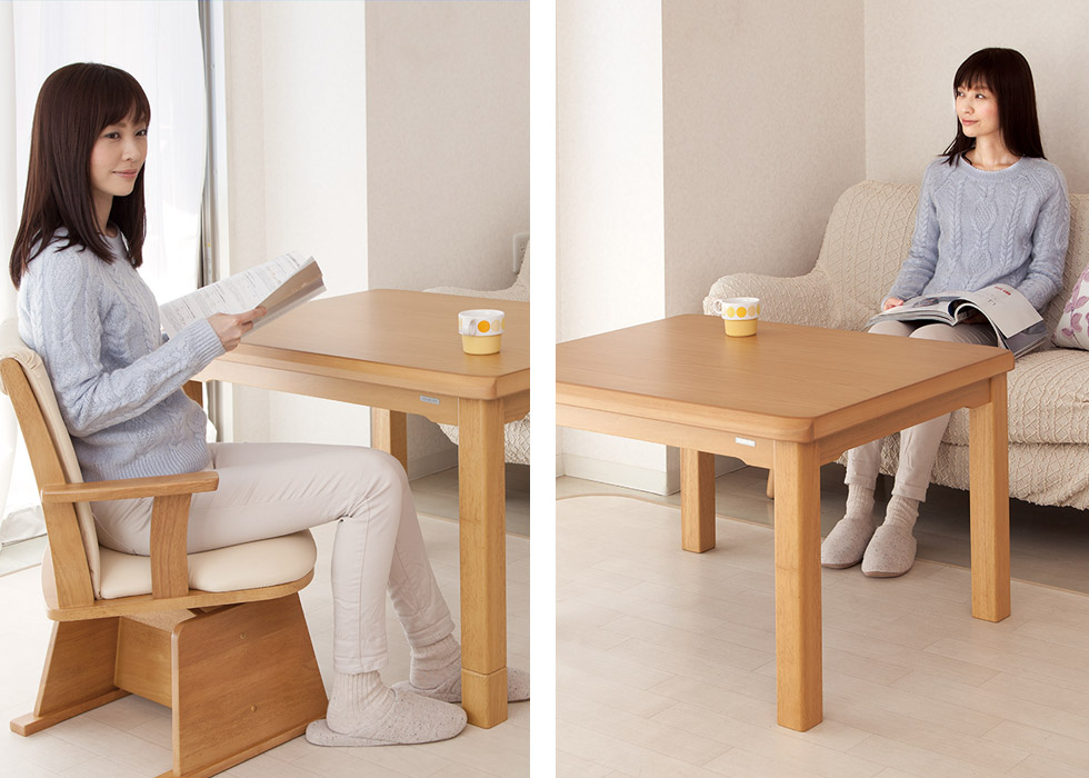 椅子やソファに合わせて高さ調節ができるダイニングコタツ