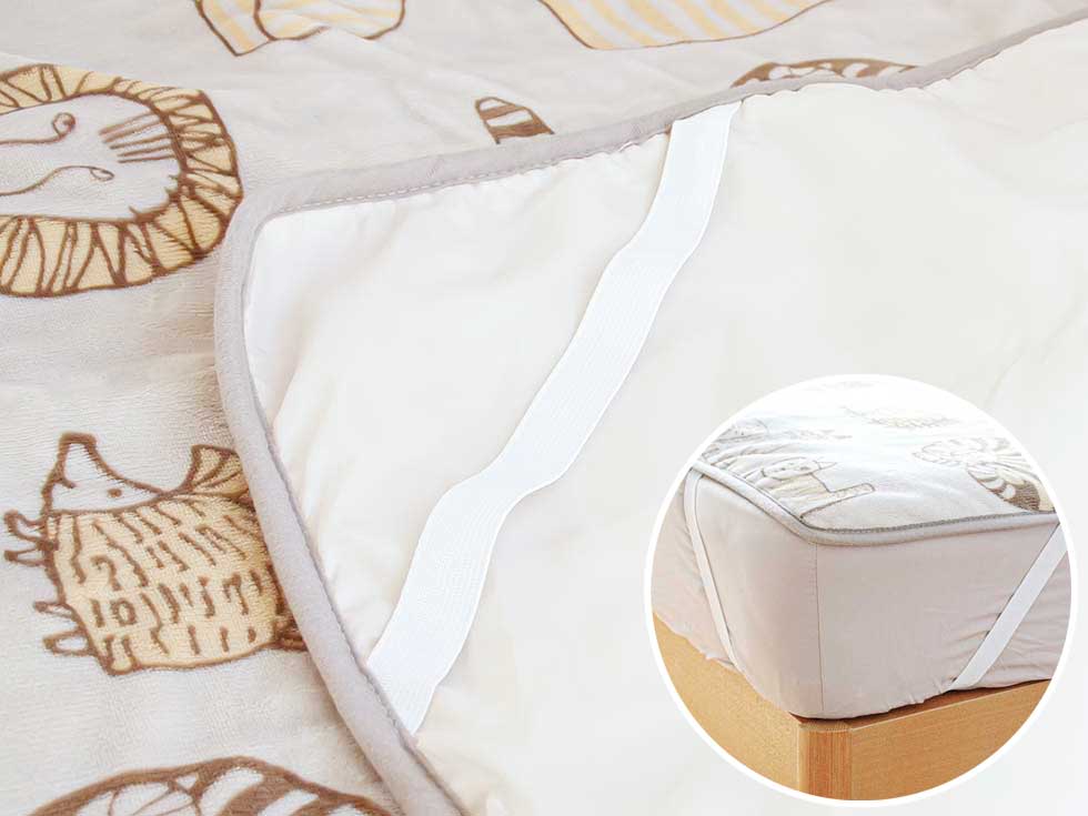 ベッドに固定しやすいゴムバンド付き。