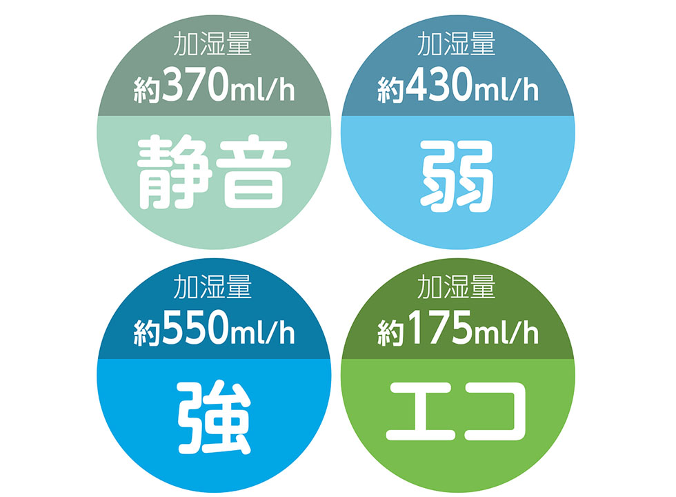 1時間当たりの加湿能力(50/60hz) ・エコ :190/180ml/h