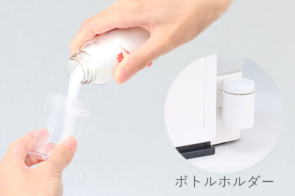 ボトルには計量スプーンがついており、はかりやスプーンを準備しなくても使用できます。