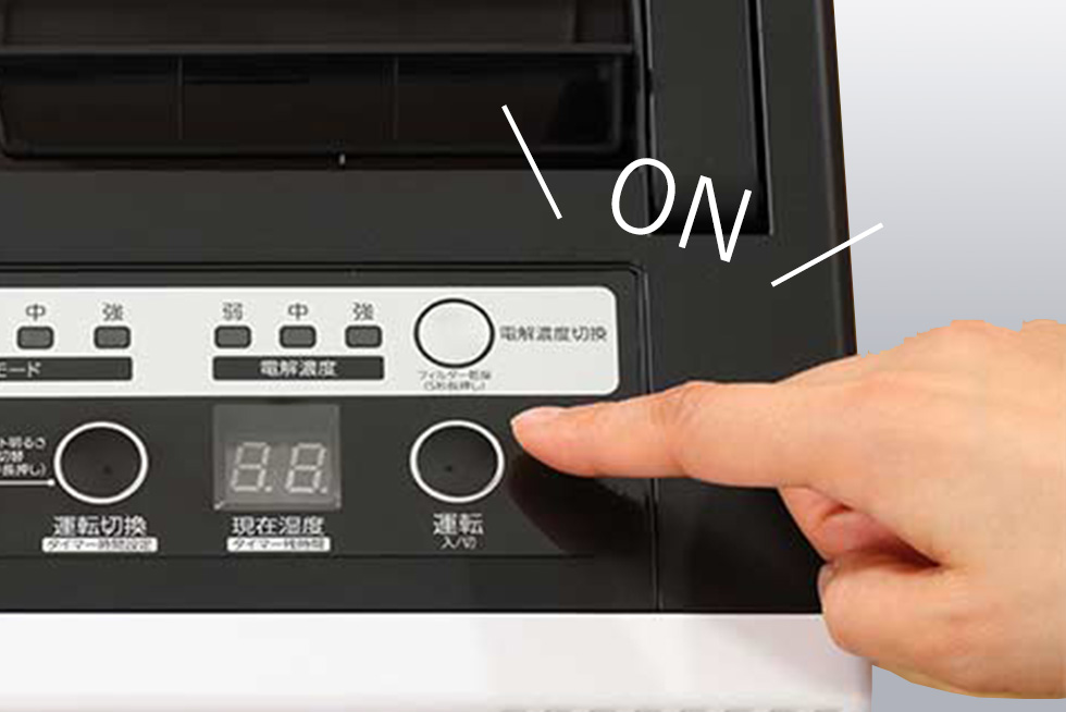 ※水道水以外(浄水した水、アルカリイオン水、温水等)を使用しないでください。故障の原因や正常に電解されない場合があります。
