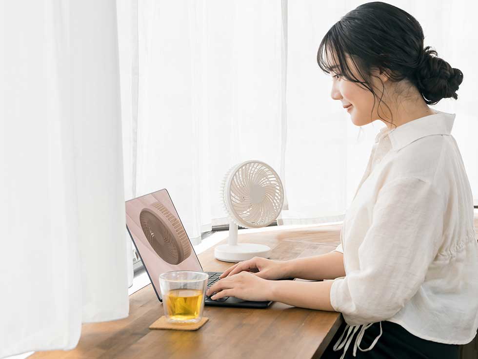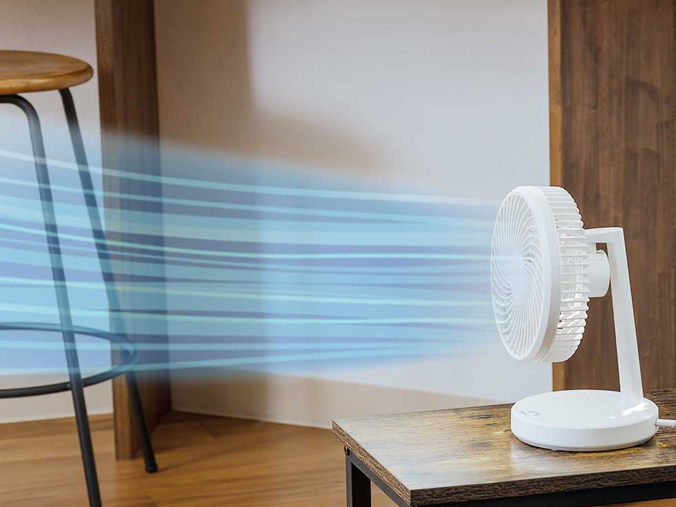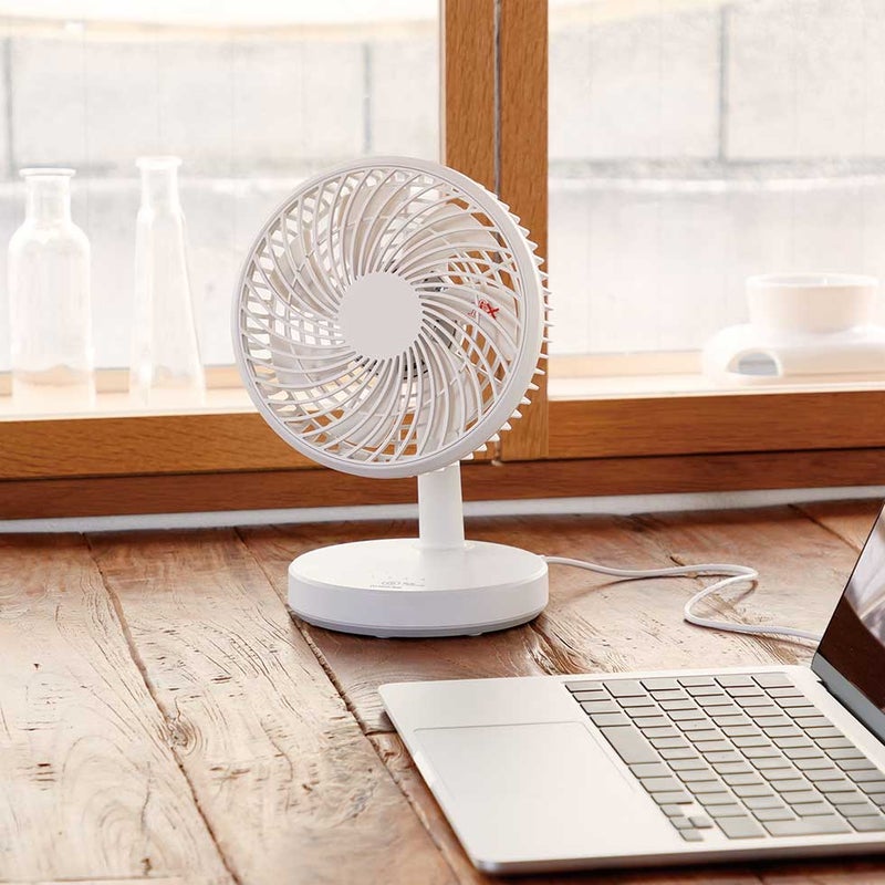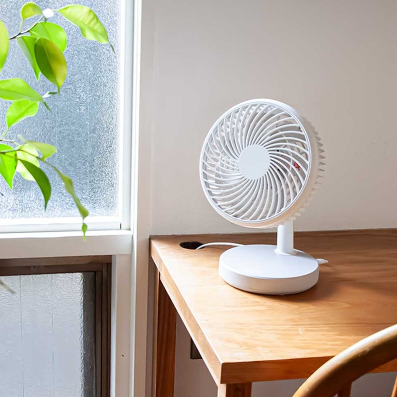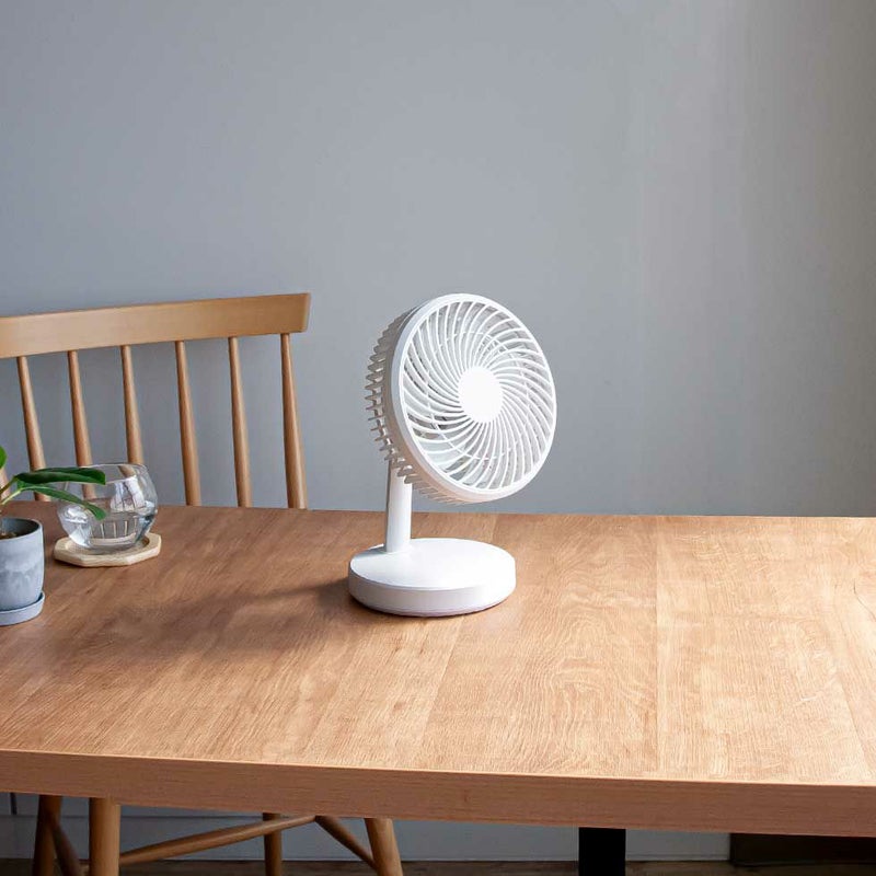 コンパクトサイズで、いろいろな場所で使える卓上扇風機。