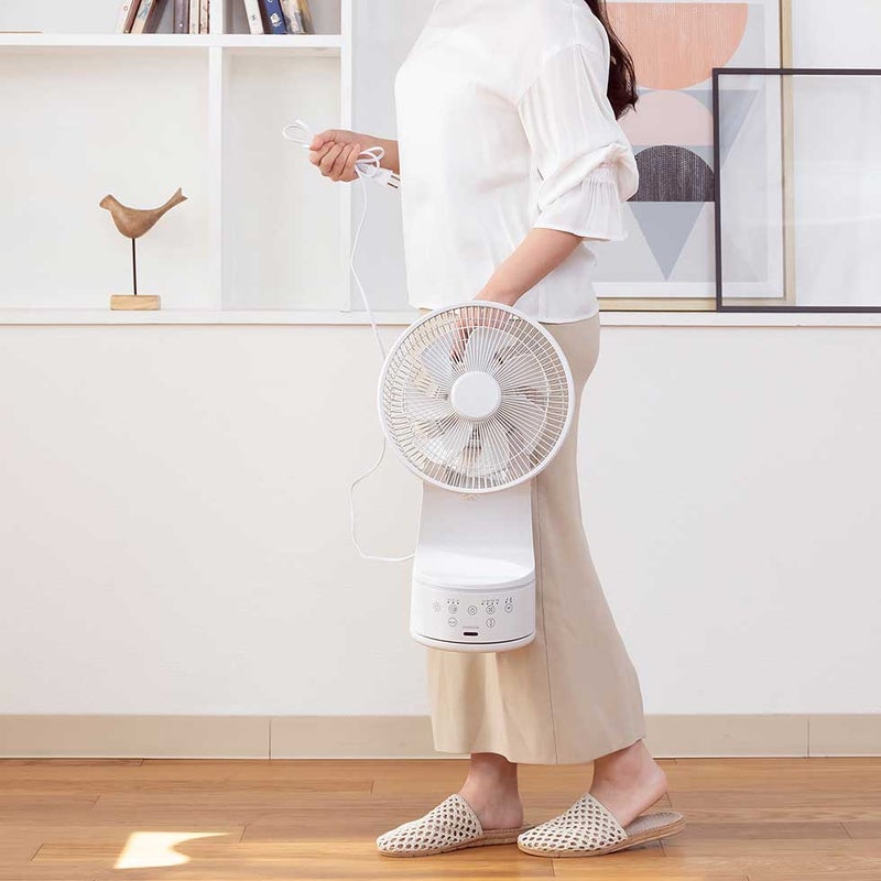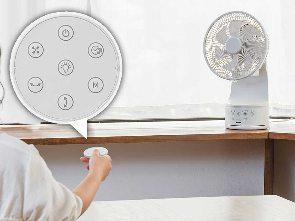 家の中で取り回しやすい、コンパクトな羽根径×LEDライト機能のおしゃれな扇風機。