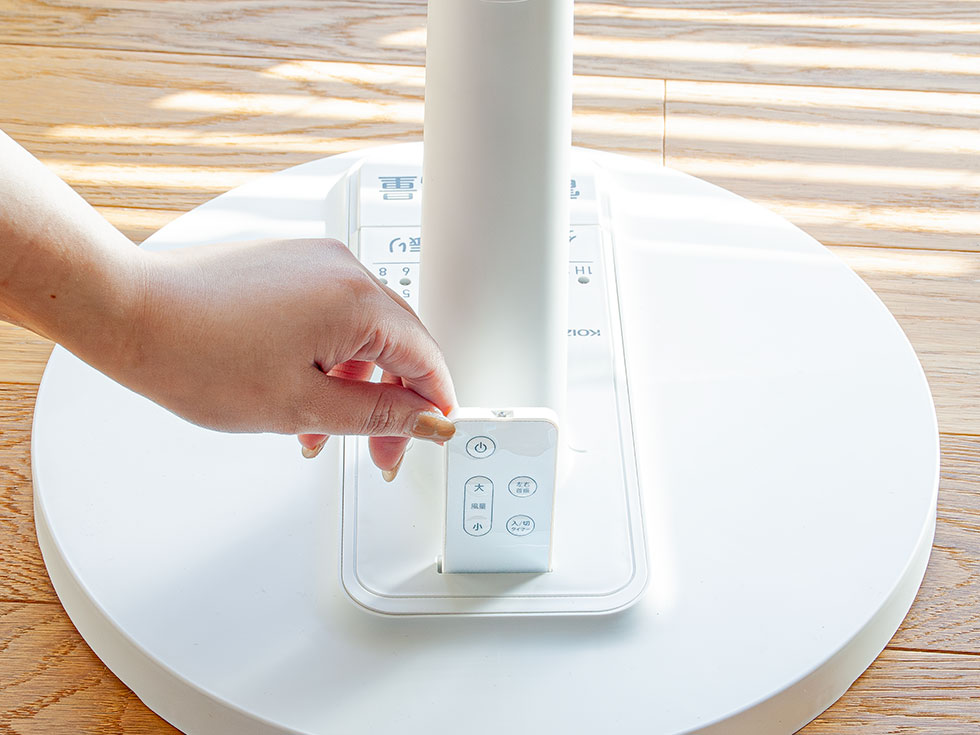 約70°の首振りで、リモコンでも本体でも操作可能です。