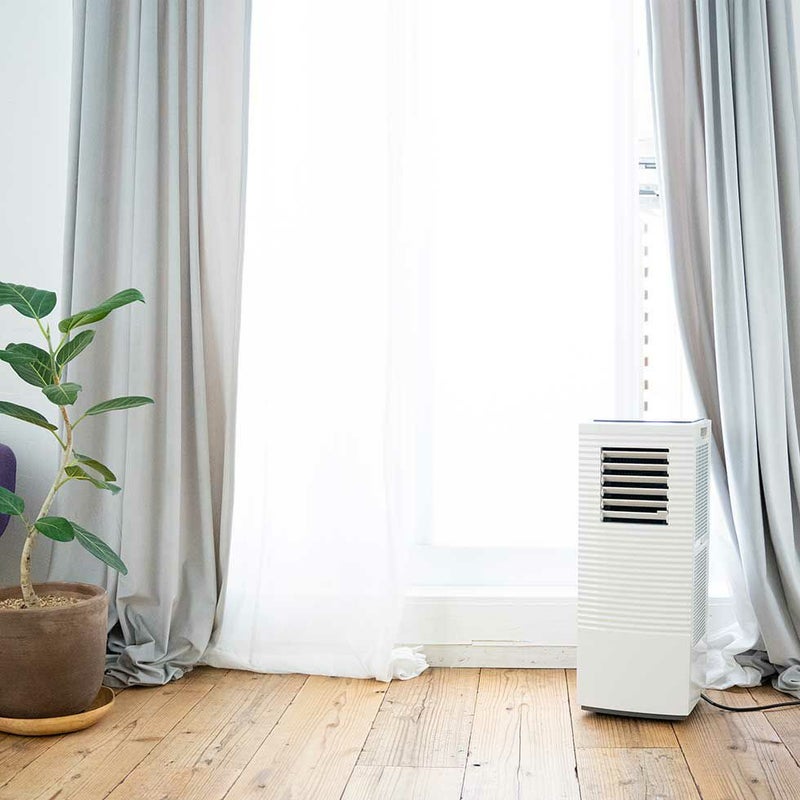 面倒な取付工事が不要でコンパクトサイズ。お家のいろいろな場所に移動して使用できます。今までになかった涼しさをお届け。