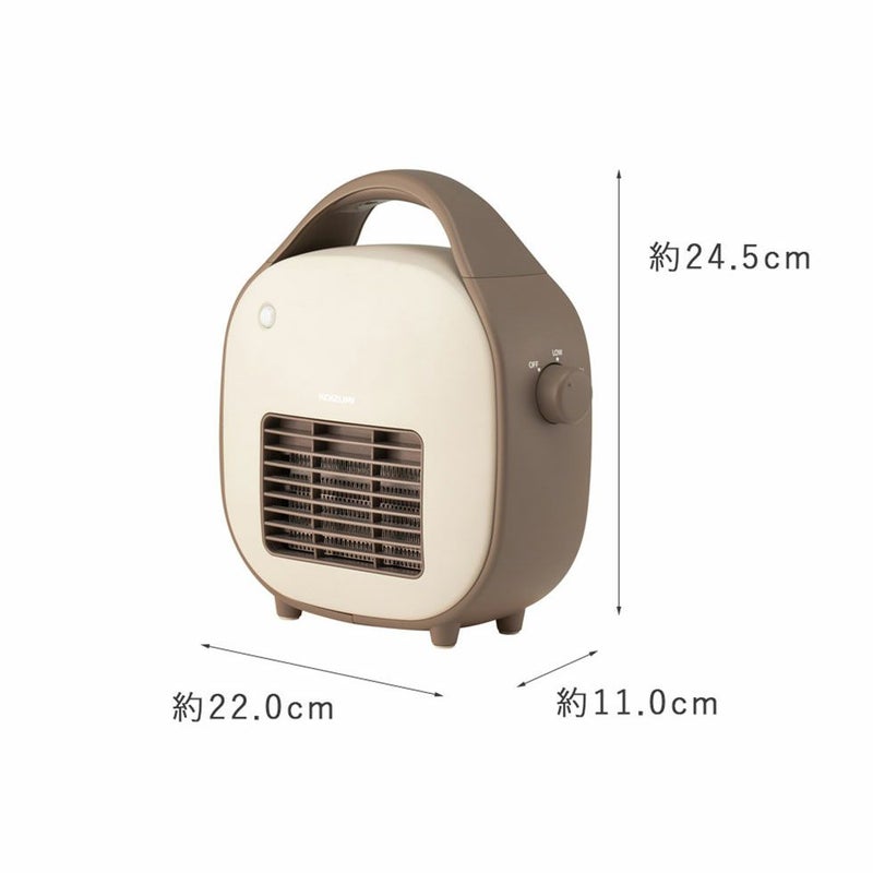コロンとしたデザインの、かわいらしいセラミックヒーター。