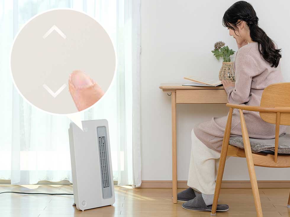 温風で暖まる、縦置きでも横置きでも使えるセラミックヒーター
