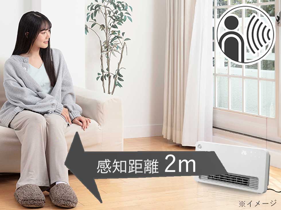 人がいなくなると約3分後に運転停止、動きを感知すると運転再開します。