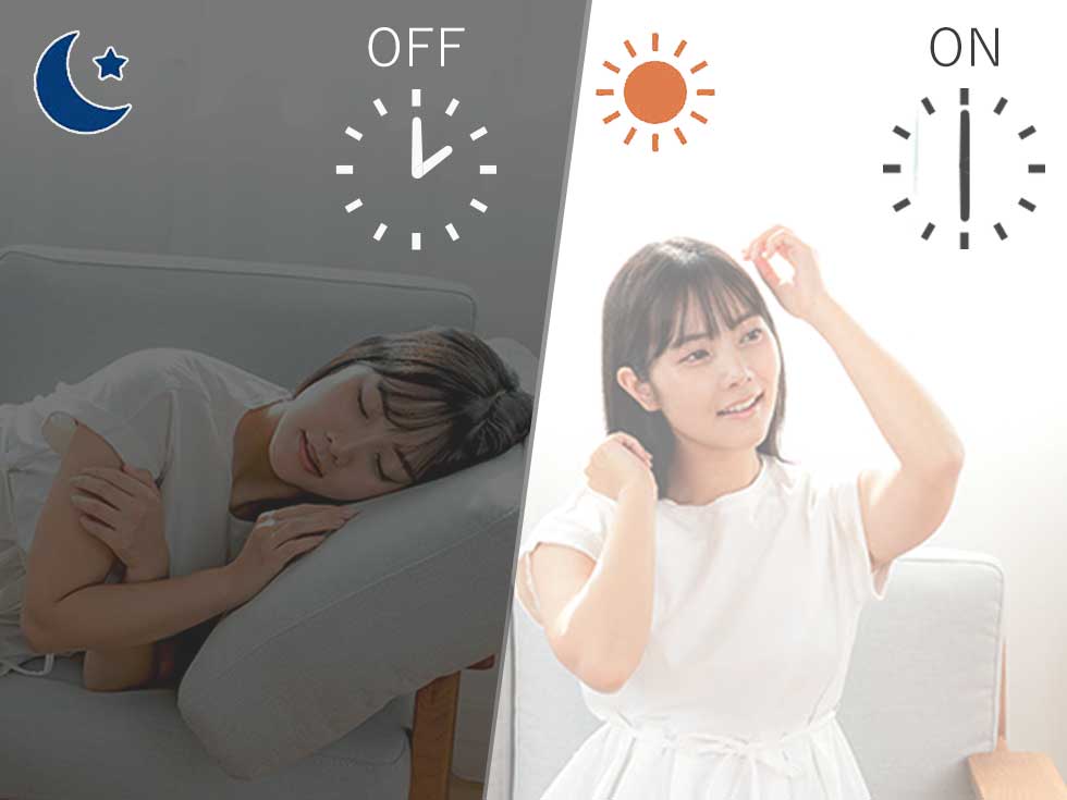 お目覚めも快適、設定した時間に自動的に電源オン。