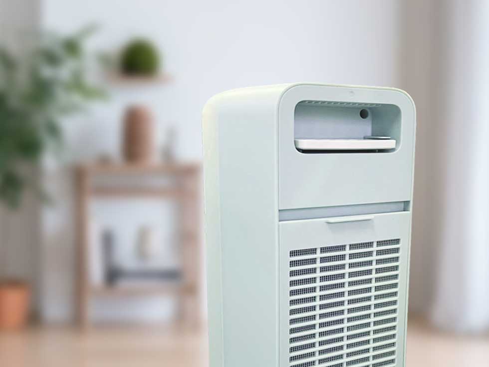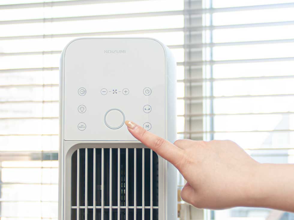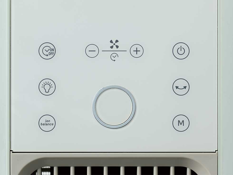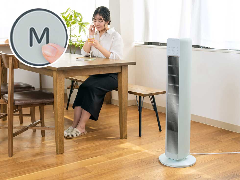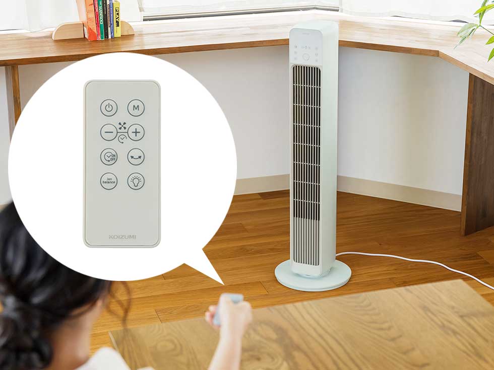 お部屋の印象を邪魔しにくい、縦型デザインのタワーファンです。