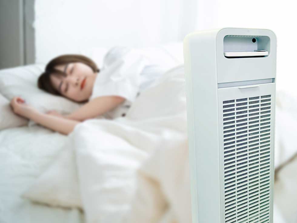 風量を段々と弱くなるように切り替えながら運転。冷えすぎを防ぎ、就寝時もやさしく使えます。