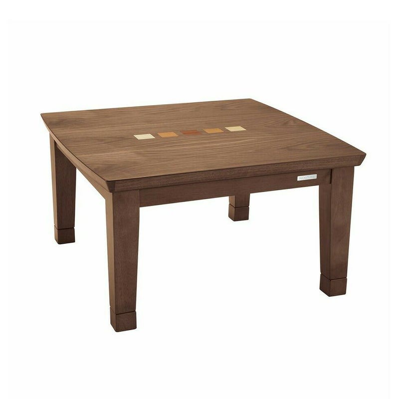 ウォールナットの突板天板の中央に象嵌があり、インテリア性の高いテーブルこたつです。