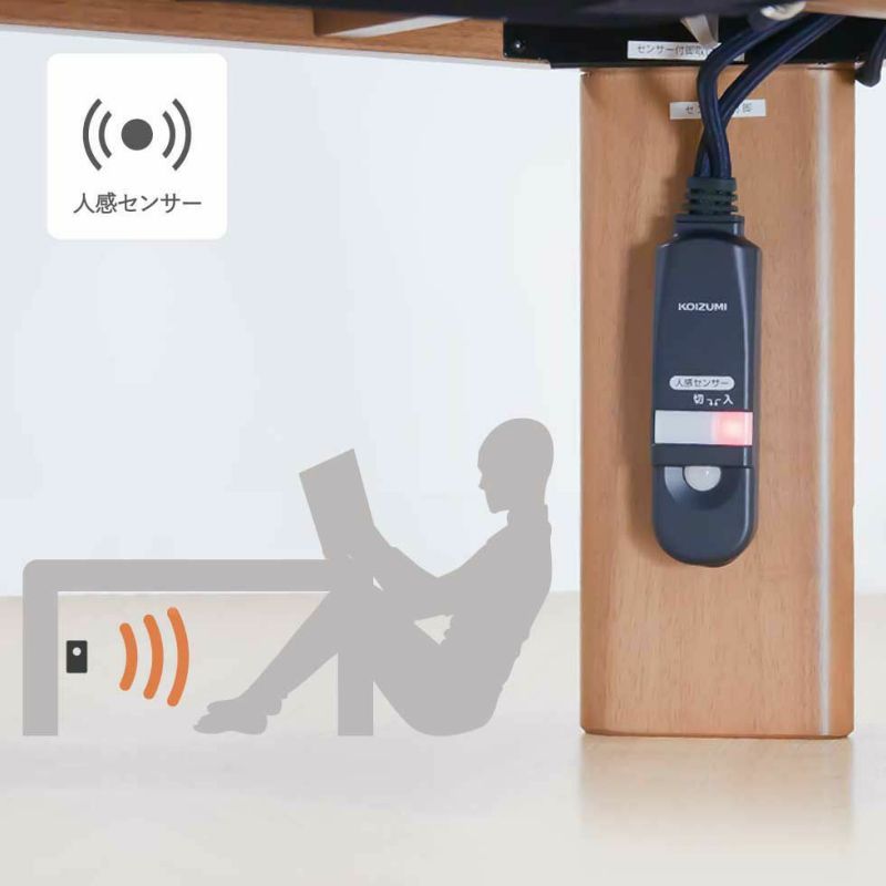 動きを検知して自動で電源入/切。人がいないと約5分で自動で電源切れます。
