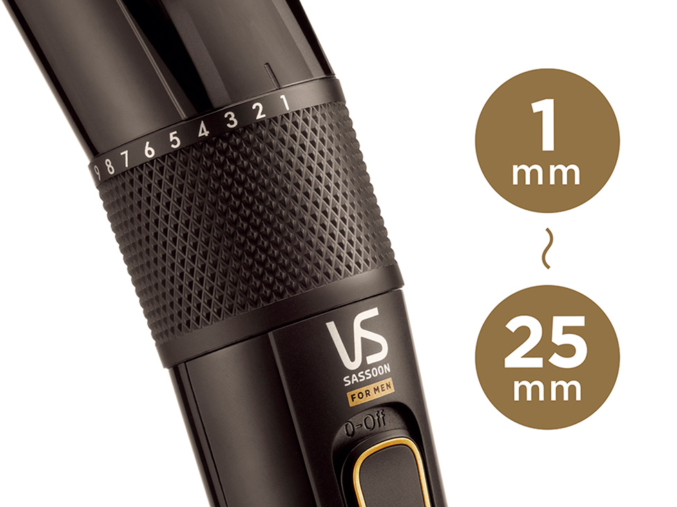 仕上がりの長さは調節ダイヤルを回すことで、1~25mmまで1mm単位で設定が可能。