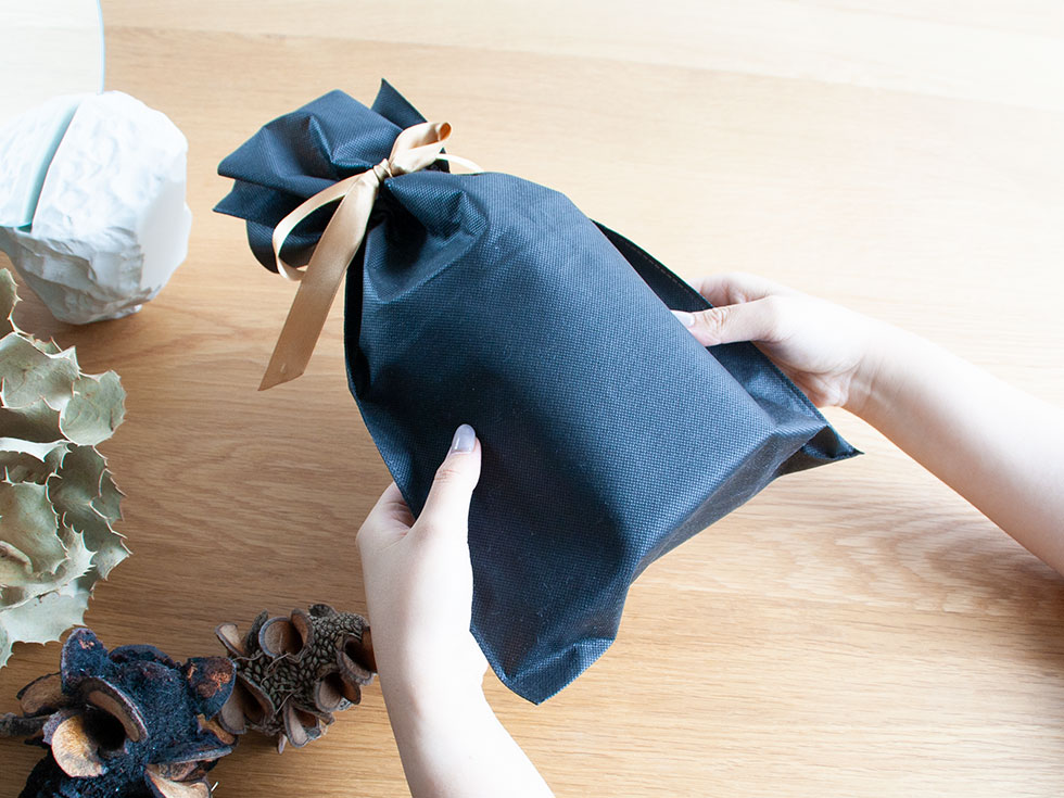 不織布のラッピング袋にてお包みいたします。